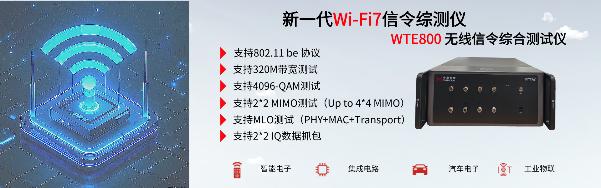 WTE800無線信令綜合測試儀(以下簡稱“WTE800”)是由深圳市中承科技有限公司自主研發(fā)和生產(chǎn),可用于Wi-Fi設(shè)備在研發(fā)、生產(chǎn)、認(rèn)證等環(huán)節(jié)測試的多功能綜合測試儀,通過配置客戶端或AP端參數(shù),真實(shí)建立Wi-Fi網(wǎng)絡(luò)呼叫連接,自動(dòng)實(shí)現(xiàn)被測件的各項(xiàng)射頻與協(xié)議性能指標(biāo)精準(zhǔn)測試。